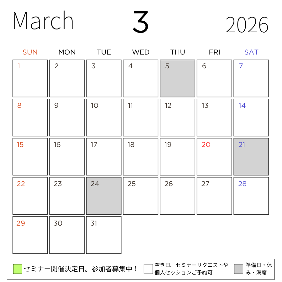 ※それ以外の日は3名様以上のご依頼か、リクエスト制になります。公式ストアの予約ページ、もしくはメールかLINEからご依頼ください。オンライン(Zoom)での開催にも対応できます。