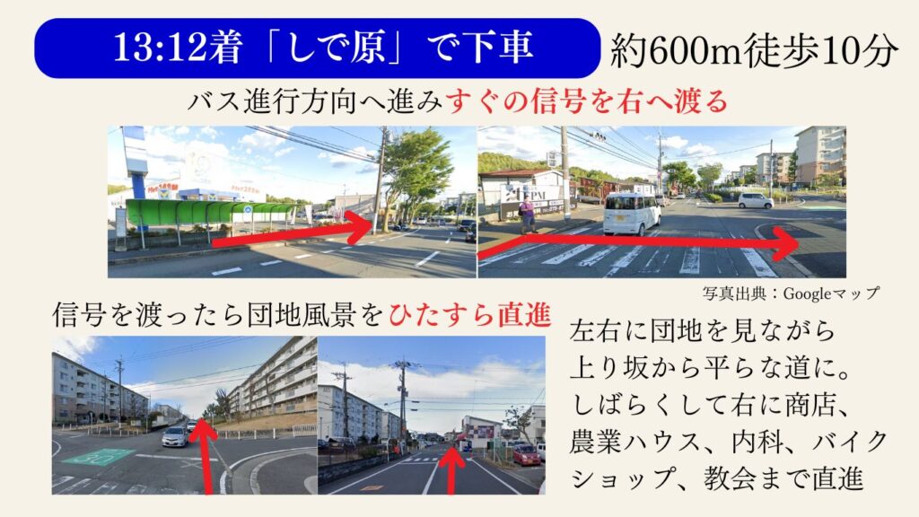 バス停「しで原」からの道順
