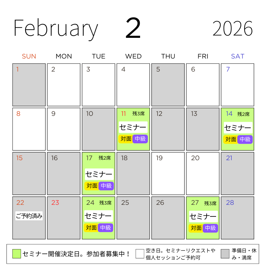 ※それ以外の日は3名様以上のご依頼か、リクエスト制になります。公式ストアの予約ページ、もしくはメールかLINEからご依頼ください。オンライン(Zoom)での開催にも対応できます。