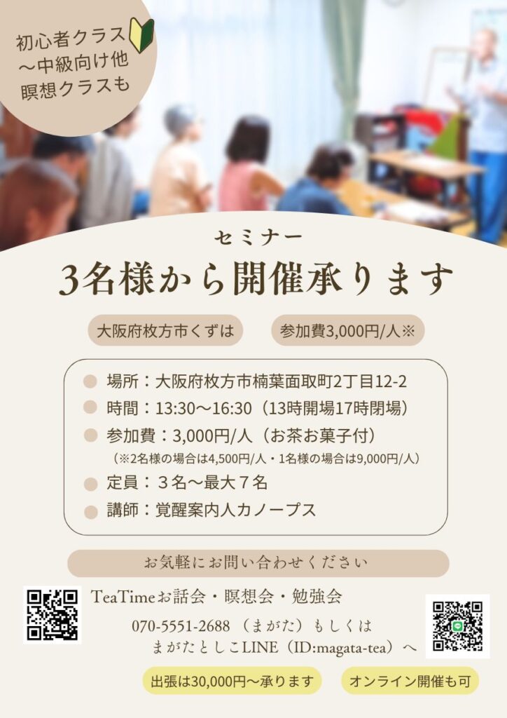 ※開催日は、変更になる場合もあります。また、リクエストにより開催日を追加する場合もあります。リクエストは3名様~承っております。